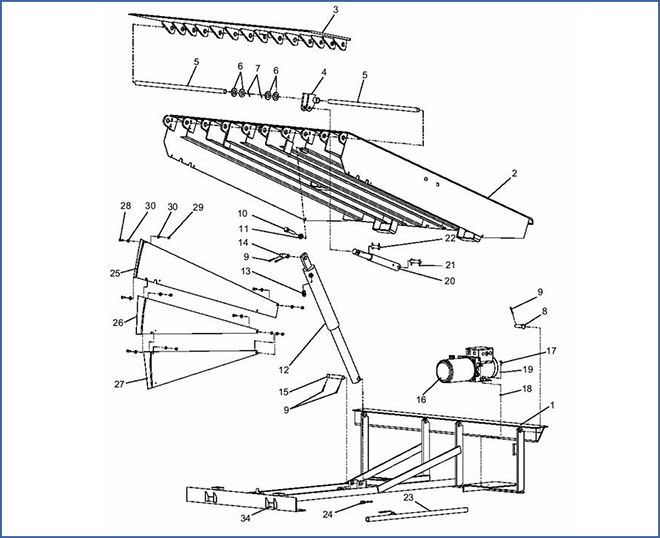 H.兩側(cè)均設(shè)有防卷制裙板,以防止意外傷害到達(dá)平臺(tái)。有一個(gè)支撐桿,確保維修人員進(jìn)入對(duì)接橋進(jìn)行維修。